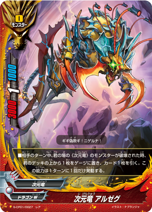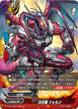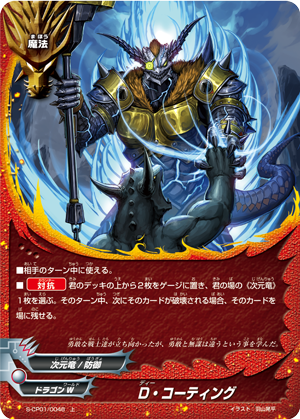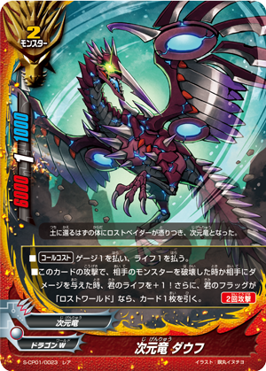 - [Counter] Put the top two cards of your deck into your gauge, and choose a 《Dimension Dragon》 on the field. For this turn, the next time that card would be destroyed, it remains on the field.