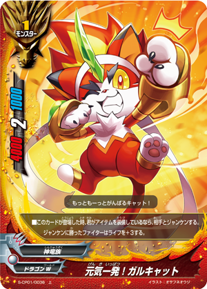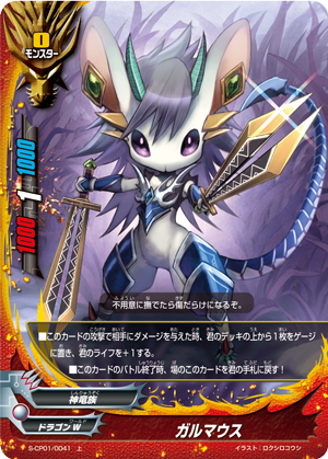 - When this card attacks and deals damage to your opponent, put the top card of your deck into your gauge, and you gain 1 life.