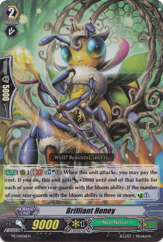 Auto [R] [Generation Break (1)]: [Soul Blast (1)] When this unit attacks, you may pay the cost. If you do, this unit gets [Power] +2000 until end of that battle for each of your other rear-guards with the bloom ability. If the number of your rear-guards with the bloom ability is three or more, [Counter Charge (1)].