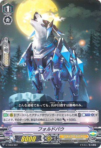 AUTO [R]: When it attacks a vanguard, if you have more rear-guards than your opponent, this unit gets [Power] +5000 until end of that battle.