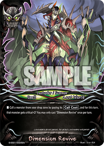 - Call a monster from your drop zone by paying its [Call Cost], and for this turn, that monster gets critical+2! You may only cast "Dimension Revive" once per turn.