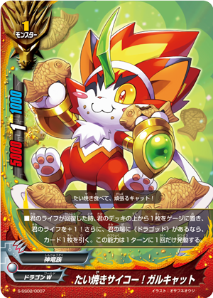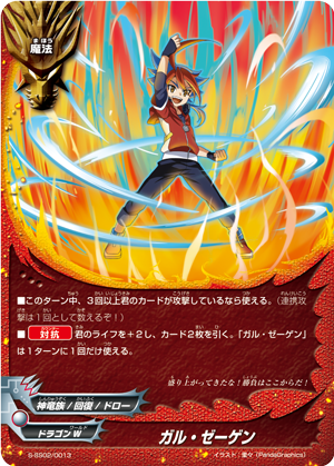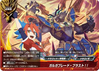 - When you gain life, put the top card of your deck into your gauge, you gain 1 life! Then, if you have a 《Dragod》 on your field, draw a card. This ability only activates once per turn.