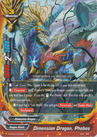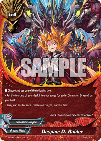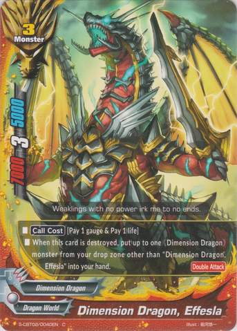 - At the start of each player's attack phase, if this card is in your drop zone, and you have a 《Dimension Dragon》 on your field, you may pay 1 life. If you do, call this card from your drop zone.