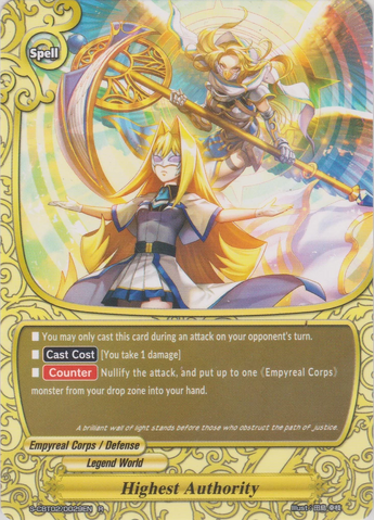 - [Counter] 【Act】 Return a 《Empyreal Corps》 monster from your field to hand. If you do, put the top card of your deck into your gauge. You may only use this ability once per turn.