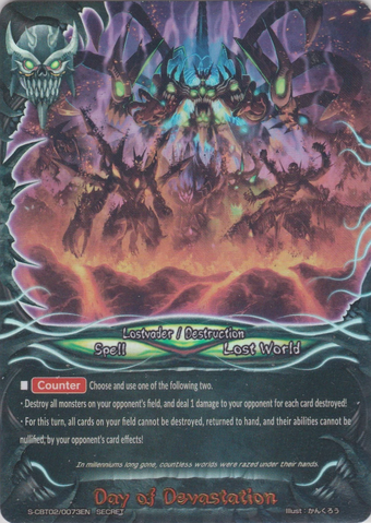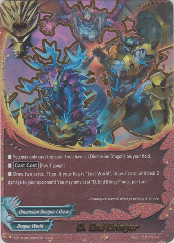 - Draw two cards. Then, if your flag is "Lost World", draw a card, and deal 2 damage to your opponent! You may only cast "D. End Bringer" once per turn.
