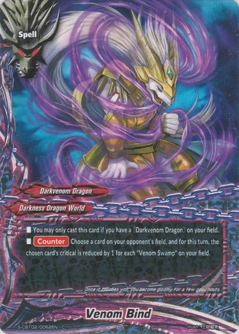 - [Counter] Choose a card on your opponent's field, and for this turn, reduce its critical for each "Venom Swamp" on your field.