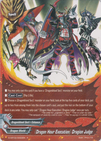 - During your opponent's turn, if this card is in the soul of a 《Dragonblood Sect》, and when a monster on your opponent's field is destroyed by your card effects, put the top card of your deck into your gauge, and you gain 1 life!