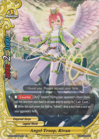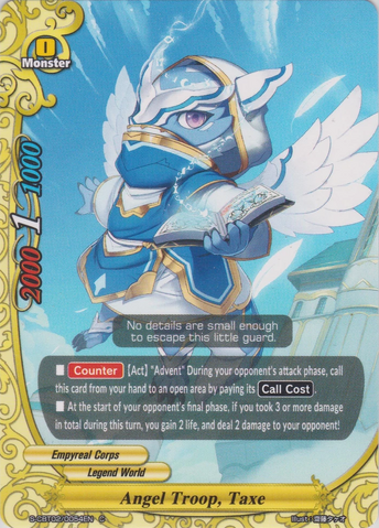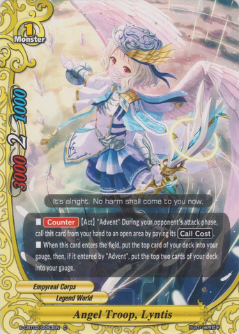 - [Counter] 【Act】 "Advent" During your opponent's attack phase, call this card from your hand to an open area by paying its [Call Cost].