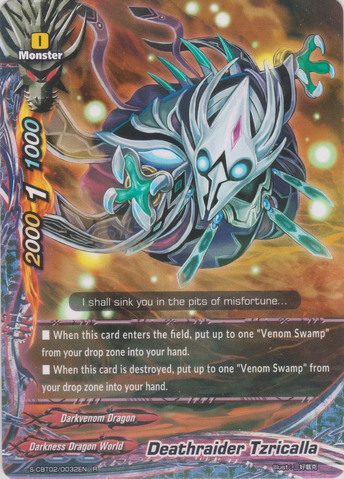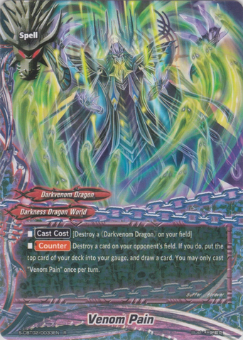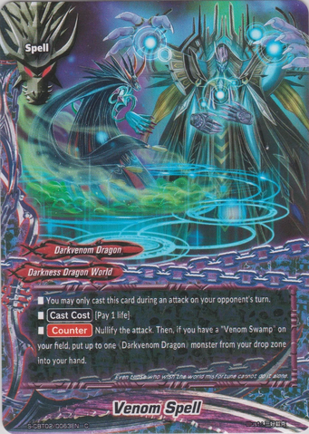 - [Counter] Nullify the attack. Then, if you have a "Venom Swamp" on your field, put up to one 《Dark Venom Dragon》 monster from your drop zone into your hand.