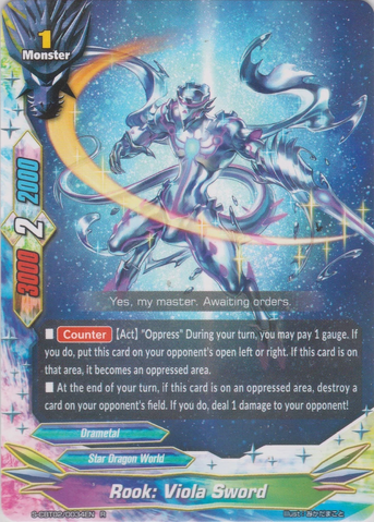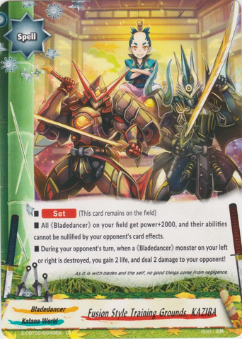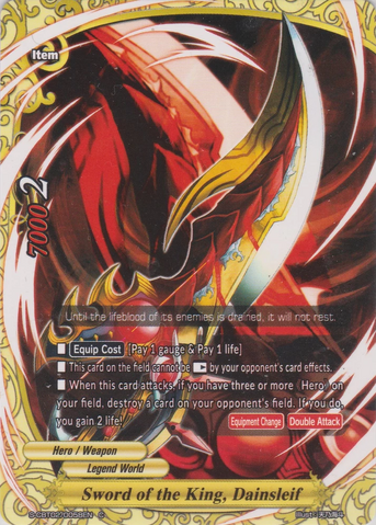 - At the start of each player's attack phase, if your equipped 《Excelblade》 is [Stand], nullify the abilities of a card on your opponent's field and destroy it. If you do, put the top card of your deck into your gauge, and you gain 1 life!