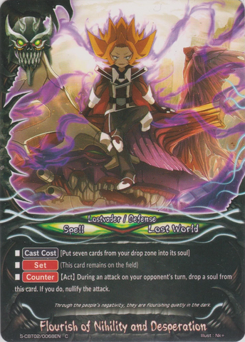 - [Counter] 【Act】 During an attack on your opponent's turn, drop a soul from this card. If you do, nullify the attack.