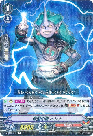 AUTO [R]: When placed, one of your unit gets [Power] +3000 until end of turn. If that unit is grade 3, [S-Charge (1)].