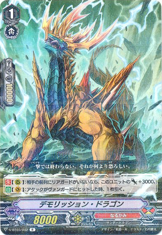 AUTO [V/R]: When placed, COST[S-Blast (1)], look at five cards from the top of your deck, reveal up to one grade 3 card from among them, put it on the top of your deck, shuffle the rest of cards looked at on the bottom of your deck, and this unit gets [Power] +5000 until end of turn.