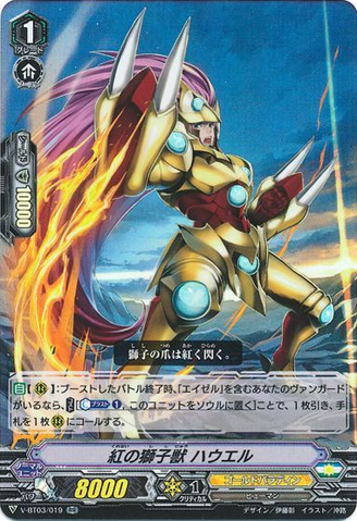 AUTO [V]: When it attacks, if “Incandescent Lion, Blonde Ezel” is in your soul, COST[C-Blast (1)], until end of that battle, this unit gets [Power] +15000 / [Critical] +1, and your opponent cannot call sentinels from his or her hand.