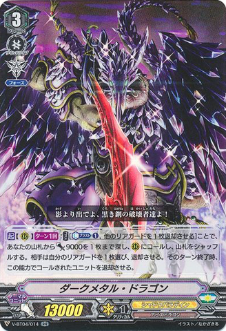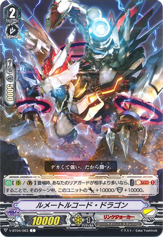 AUTO [R]: When placed, if you have a <Cyber Dragon> vanguard, choose one of your opponent's grade 2 or greater rear-guards, bind it face down, then COST[retire this unit], and [C-Charge (1)].