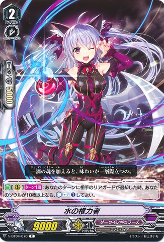AUTO [V]: When a grade 2 or greater card is put into your soul due to an ability of card, three of your rear-guards get [Power] +5000 until end of turn.