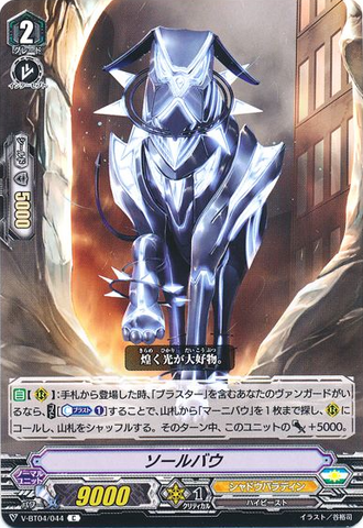 AUTO [V]: When placed by riding from a grade 3, [S-Blast] all of the cards from your soul, until end of turn, this unit gets [Power] +5000, and your opponent cannot call sentinels from his or her hand during the battle this unit attacked.