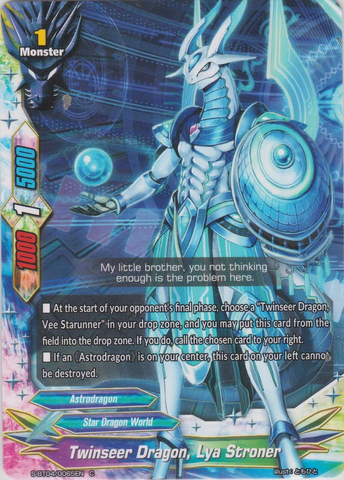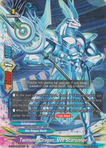 - At the start of your opponent’s final phase, choose a "Twinseer Dragon, Vee Starunner" in your drop zone, and you may put this card from the field into the drop zone. If you do, call the chosen card to the right.