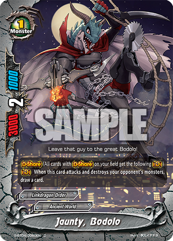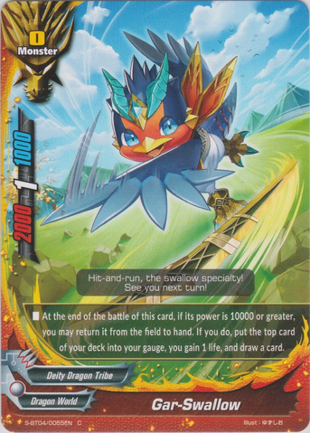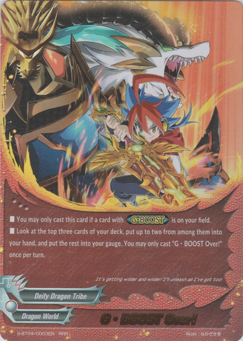 - When this card enters the field, you may drop a hand card. If you do, put the top card of your deck into your gauge, and put a card with <G•BOOST- Base -> from your deck into your hand, and shuffle your deck.