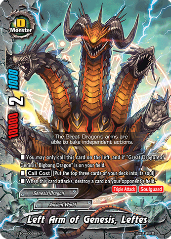 • If a size 3 《Genesis Dragon》 is on your field, put up to two size 0 《Genesis Dragon》 with different name from your deck into your hand, and shuffle your deck.