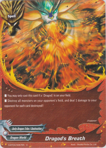 - If you have a 《Dragod》 on your field, this card and all 《Deity Dragon Tribe》 monster on the field cannot be destroyed, and their abilities cannot be nullified, by your opponent card effects.
