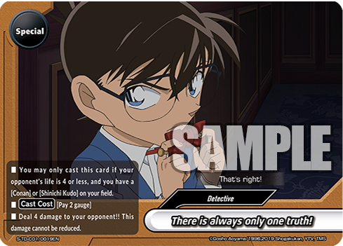 - You may only cast this card if your opponent's life is 4 or less, and you have a <Conan> or <Shinichi Kudo> on your field.