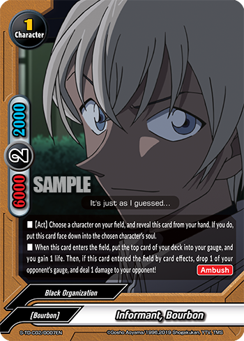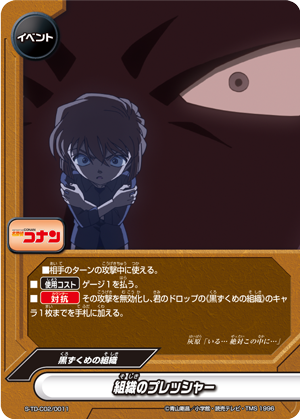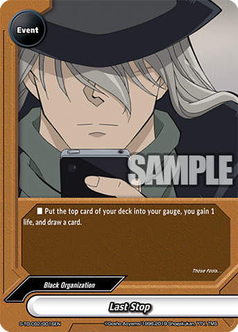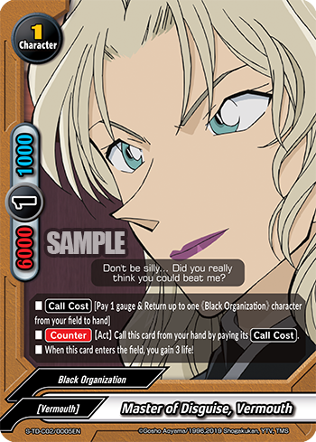 - [Counter] Nullify the attack, and put up to one 《Black Organization》 character from your drop zone into your hand.