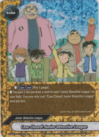 - When this card attacks, if you have three or more 《Junior Detective League》 on your field, for this turn and next turn, all characters and items on your opponent's field cannot [Stand].
