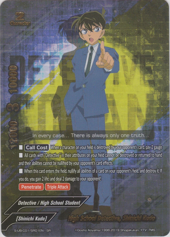 - When a <Conan> or <Shinichi Kudo> enters your field, you gain 2 life, and draw a card. This ability only activates once during the main phase and once during the final phase.