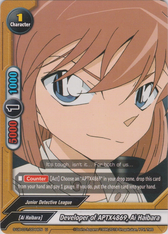 - [Counter] 【Act】 Choose an "APTX4869" from your drop zone, you may drop this card from your hand and pay 1 gauge. If you do, put the chosen card to your hand.