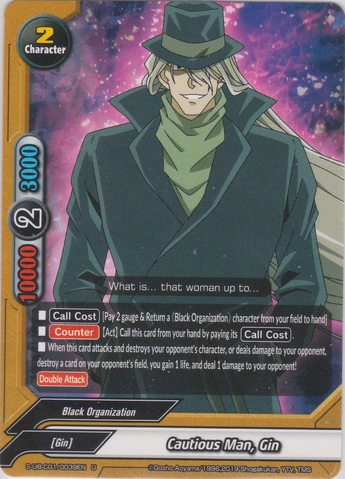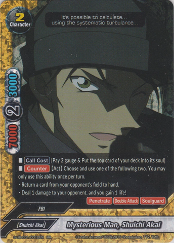 - When a 《FBI》 character on your field destroys your opponent's character, or deals damage to your opponent, put the top card of your deck into your gauge, you gain 1 life, and draw a card. This ability only activates once per turn.