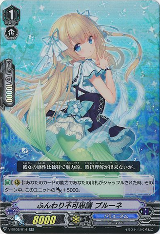AUTO [V]: When placed, reveal ten cards from the top of your deck, and if all of the normal units revealed have different card names, at the end of the first battle of this turn, [Stand] this unit. Shuffle your deck.