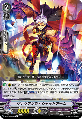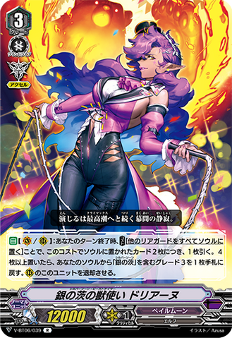 ACT [V] [1/Turn]: COST[C-Blast (2) & Discard a card from your hand], call any number of cards with "Silver Thorn" in their card names from your soul to [R], and all of your front row rear-guards get [Power] +3000 until end of turn.