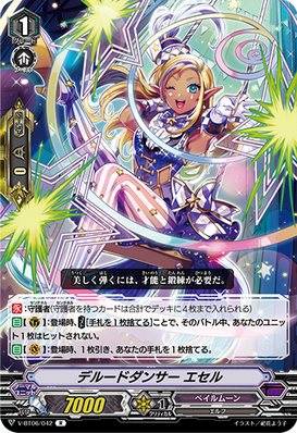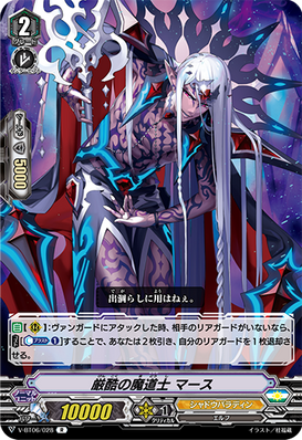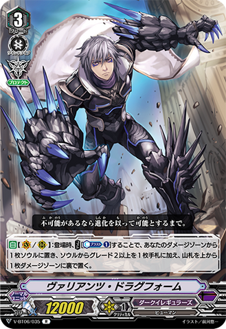 AUTO [V/R]: When placed, look at seven cards from the top of your deck, reveal up to one "Illusionary Revenger, Mordred Phantom" or "Blaster Dark" from among them and put it into your hand, and shuffle your deck. If you put a card into your hand, retire one of your rear-guards.