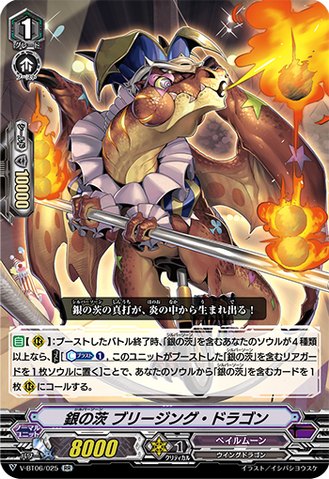 ACT [V] [1/Turn]: COST[C-Blast (2) & Discard a card from your hand], call any number of cards with "Silver Thorn" in their card names from your soul to [R], and all of your front row rear-guards get [Power] +3000 until end of turn.