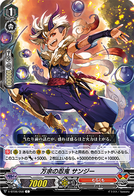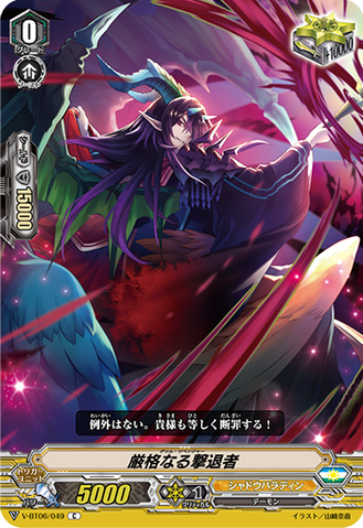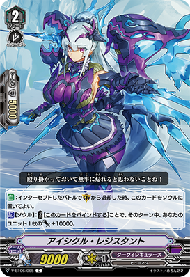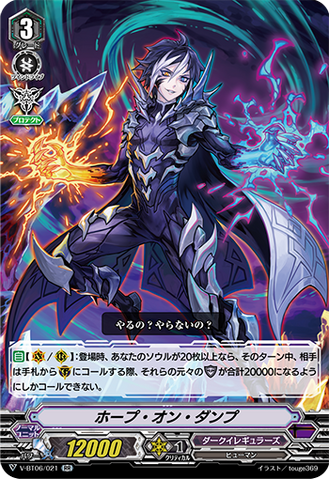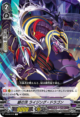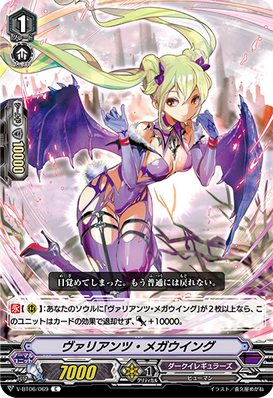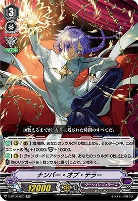 AUTO [V]: When it attacks, if your soul has two or more grade 3, choose one of your or your opponent's rear-guards, retire it, and this card gets the [Power] and [Critical] of that unit until end of that battle. (Added amount is included)