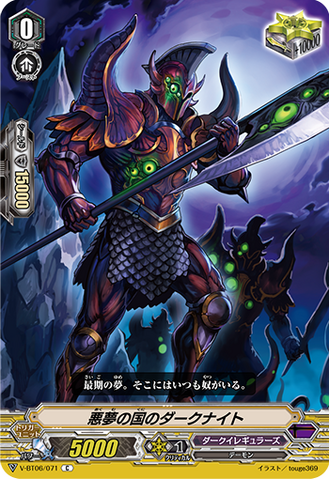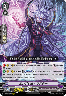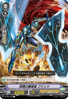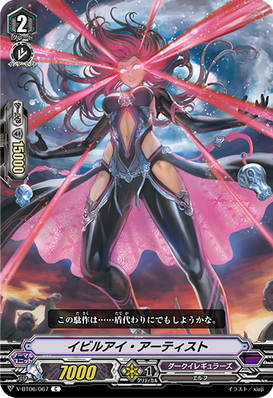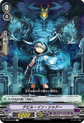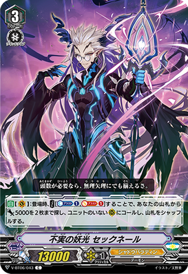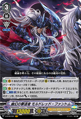 AUTO [V/R]: When placed, look at seven cards from the top of your deck, reveal up to one "Illusionary Revenger, Mordred Phantom" or "Blaster Dark" from among them and put it into your hand, and shuffle your deck. If you put a card into your hand, retire one of your rear-guards.