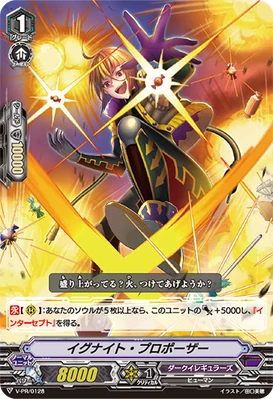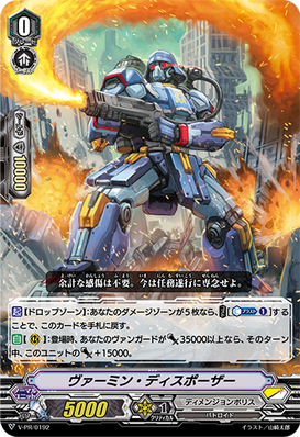 AUTO [R]: When it attacks a vanguard, if you have three or more units with "Blaster" in their card names, this unit gets [Power] +5000 until end of that battle.