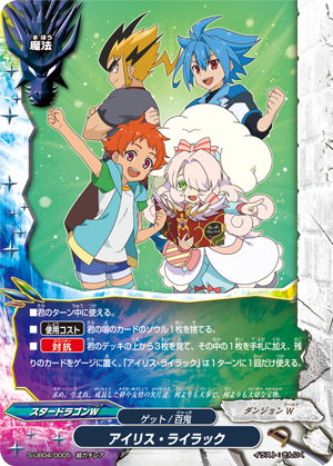- [Counter] For this turn, all 《Prism Dragon》 on your field cannot be destroyed or leave the field due to your opponent's cards. Then, put all cards from your drop zone into your deck, and shuffle it. You may only cast "Jewel Light Kickoff" once per fight.
