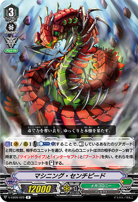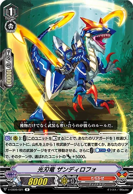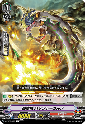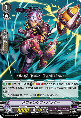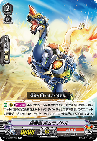 AUTO [V/R]: When it attacks, COST[C-Blast (1) & put a rear-guard on the bottom of your deck], and this unit gets [Power] +5000 / [Critical] +1 until end of that battle.