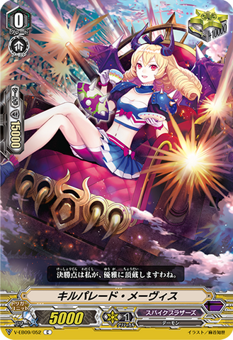 ACT [V] [1/Turn]: COST[S-Blast (1) - grade 3], put the top card of your opponent's deck into the drop zone, and your opponent cannot call the same grade as that card from his or her hand until end of turn.