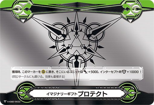 When acquired, put this marker on [R], and the unit there gets [Power] +5000, and gets [Shield] +10000 when it intercepts! (You may put it on the same circle. The effect stacks too)