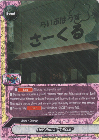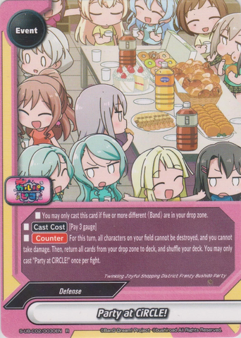 - Draw two cards. Then, you gain 1 life for each different 《Band》 character on your field. You may only cast "BanG Dream's Circle" once per turn.