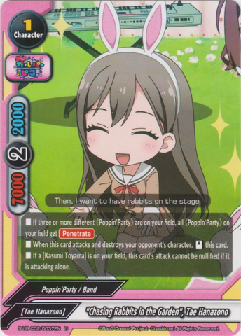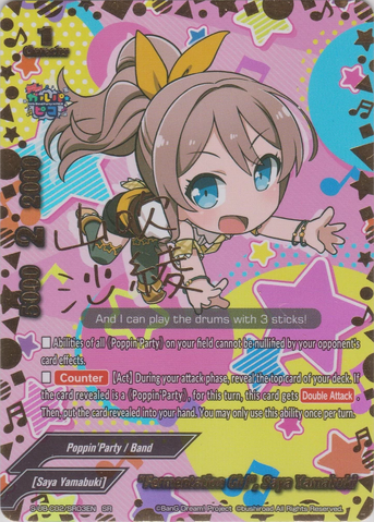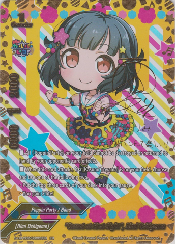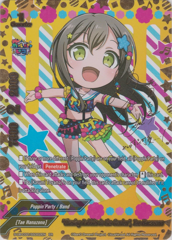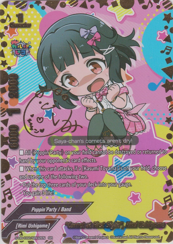 - If this card is on the center, and you have three or more different 《Poppin'Party》 on your field, all 《Poppin'Party》 on your field get power+15000, and critical+2!