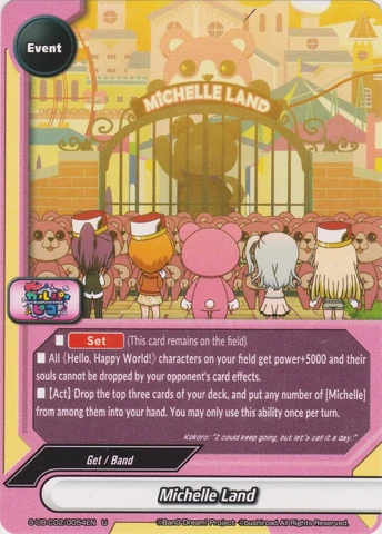 - When this card enters the field, put up to one "Michelle Land" from your deck into your hand, and shuffle your deck.