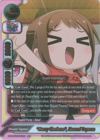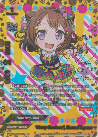 - At the start of your attack phase, if this card is on the center, call up to one 《Poppin'Party》 character other than <Kasumi Toyama> from your deck by paying its [Call Cost], and shuffle your deck.