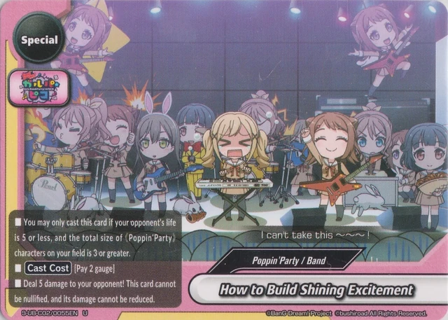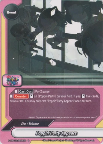 - You may only cast this card if your opponent's life is 5 or less, and a total size of 《Poppin'Party》 character on your field is 3 or more.