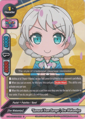 - When you cast an event, for this turn, this card get [Double Attack]. This ability only activates once per turn.