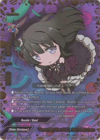 - If this card is on the center, and you have three or more different 《Roselia》 on your field, all 《Roselia》 on your field get power+10000, defense+10000, and critical+1!