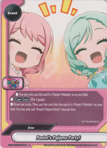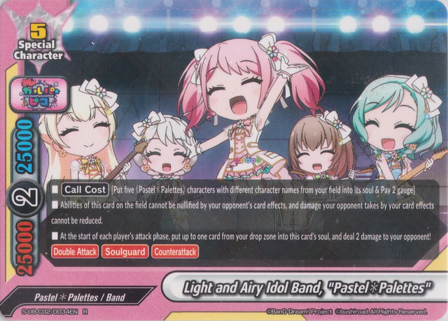 - You may only cast this card during your opponent's final phase if your opponent's life is 5 or less, and a total size of 《Pastel✽Palettes》 character on your field is 3 or more.